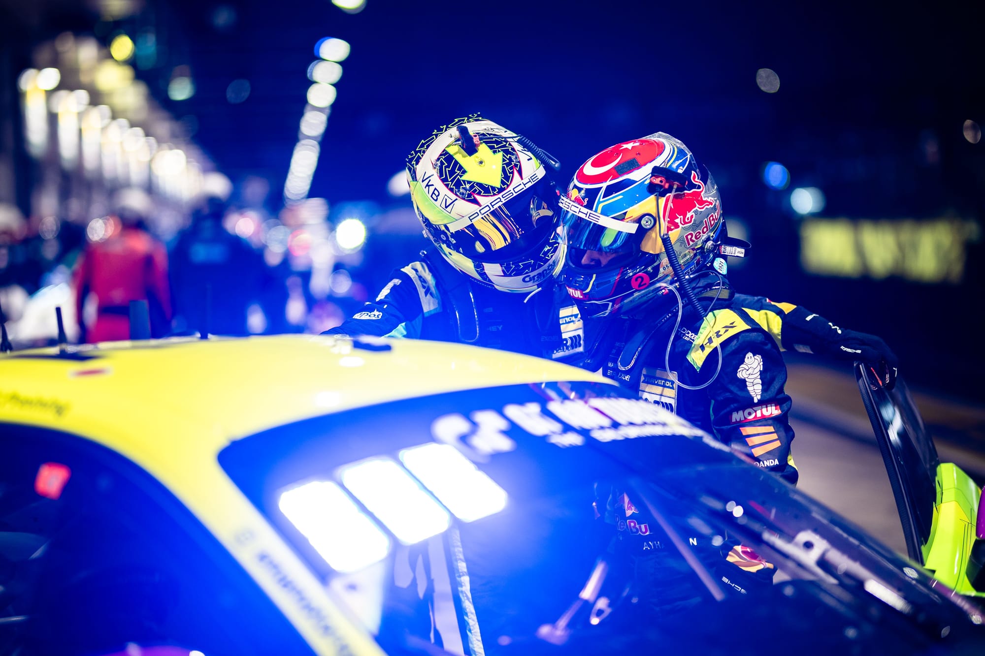 Manthey struck back at the last round of pit stops, a quick splash and dash for Estre allowed the #911 to leapfrog ahead of the BMW one more time on track. And so it came to this: Kevin Estre vs. Kelvin van der Linde in the final stint, a duel of the Kevins (one French, one South African) charging through traffic, nose to tail, after nearly 24 hours. The Grello Porsche held a slim 20-second lead on the road, with Estre wringing its neck to keep the younger Van der Linde at bay. The atmosphere was insane, with 280,000 fans on their feet and many lining the fences for the last laps. I stood on the pit balcony, heart pounding, utterly torn: the romantic in me wanted that fluorescent Grello to complete its heroic almost-flag-to-flag run; the pragmatist knew the penalty would snatch it away anyway unless something changed.